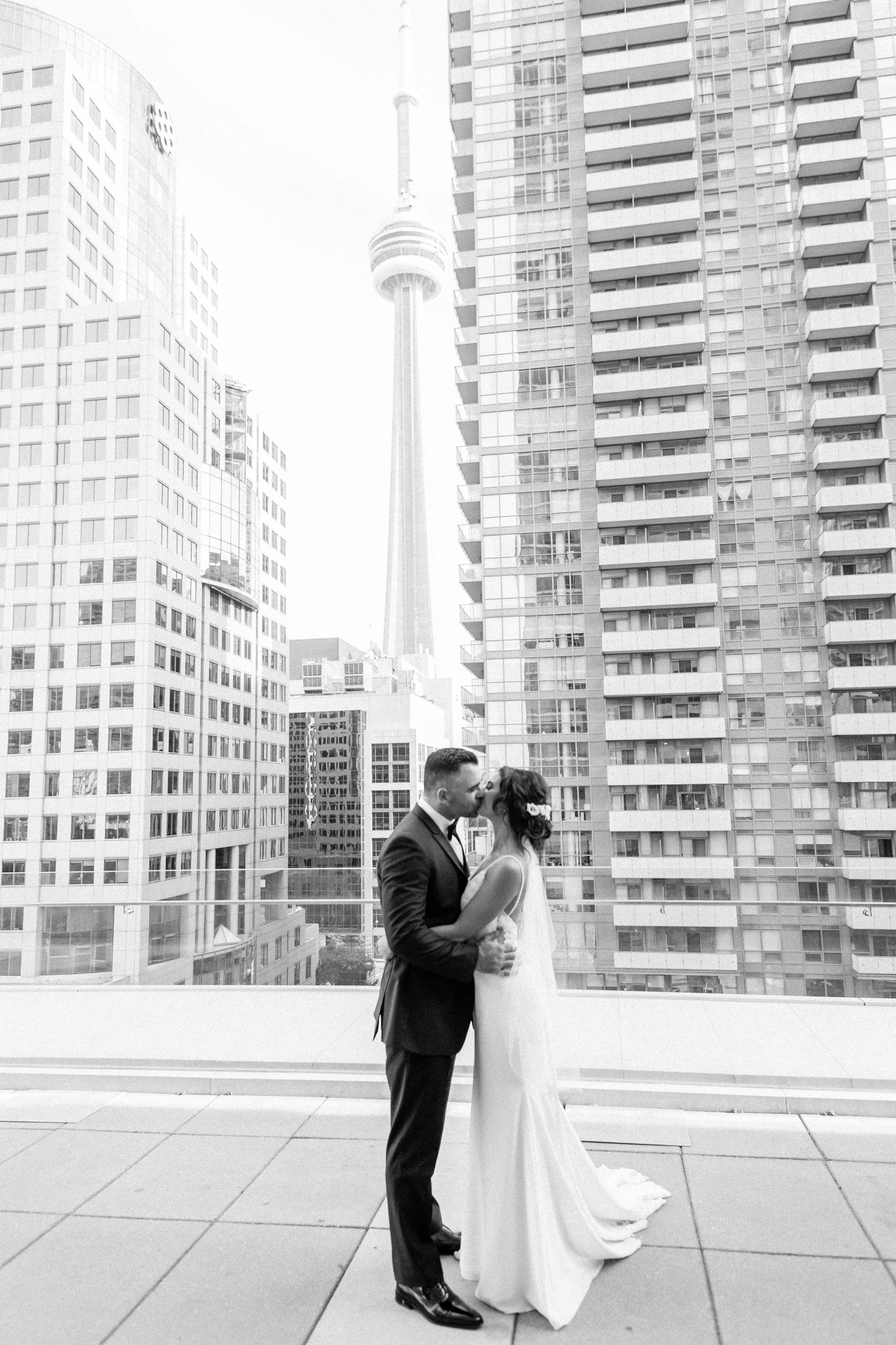 This beautiful wedding at Malaparte on the Labour Day long weekend in 2019 was one for the books. Angelina and Vincent are true couple goals. Always laughing, always supportive, down to earth, and gorgeous. Their wedding emulated all of this. With family split between Saskatoon and Toronto, it was important to them to have a very Torontonian wedding to give their out of town guests and experience they wouldn’t forget. The Malaparte rooftop is so perfect, as it looks over Restaurant Row in downtown Toronto, with a clear view of the CN tower, and the bright city lights shining throughout the night. The incomparable Corina V. Photography team was on site to capture everyone moment- scroll down to see more!